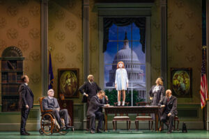 The original lead singer and founding member of The Wiggles, Greg Page, makes for an inviting President Roosevelt. He transitions to musical theatre with distinction.