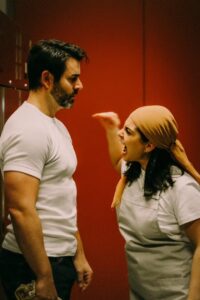The action – loud and raucous interchanges between the actors – begins even before the play starts, so remember to arrive a few minutes early. The tone has been set and there will be no let up. The stakes continue to be ratcheted up.