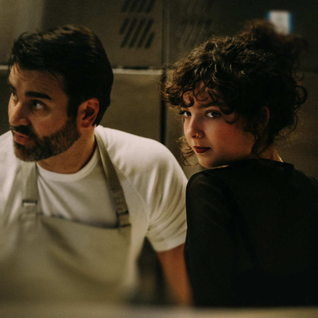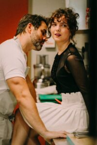 The Greek chef in charge, Kristina (Izabella Yena) is parlaying with her Italian sous-chef, John (Adam-Jon Fiorentino). The two are a couple, but she has seniority in the kitchen. Still, there is no question about her feelings for him. They dance and kiss.